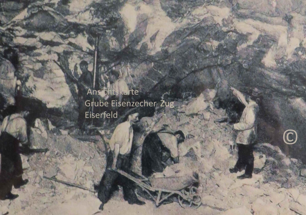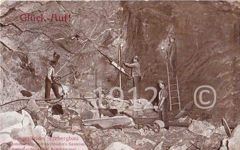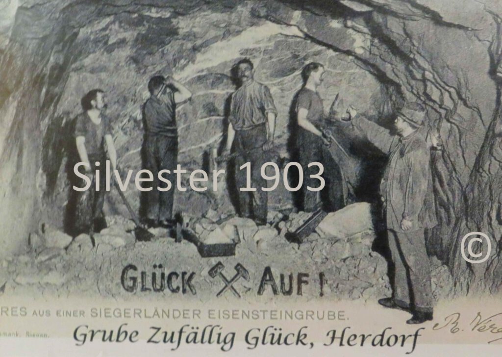 Veröffentlicht am Januar 22, 2026Januar 25, 2026 von C.H.Ansichtskarten von Unter Tage Arbeiten im Siegerland um 1900 Aufnahmen dieser Ansichtskarten stammen vom Photohaus Heinrich Schmeck in Siegen Silvester 1903 wurde diese Ansichtskarte an den Bergrat Georg Gerlach versandt. Er war Lehrer an der Bergschule in Siegen. 1912 wurde diese Ansichtskarte an den Musketier Dörr Inf. Reg. Nr. 116 versandt. Eine Werbekarte der Firma Hoffmann
